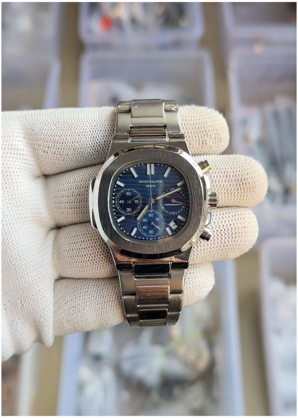 Patek_philippee Nautilus Steel Sun Moon Silver-Blue